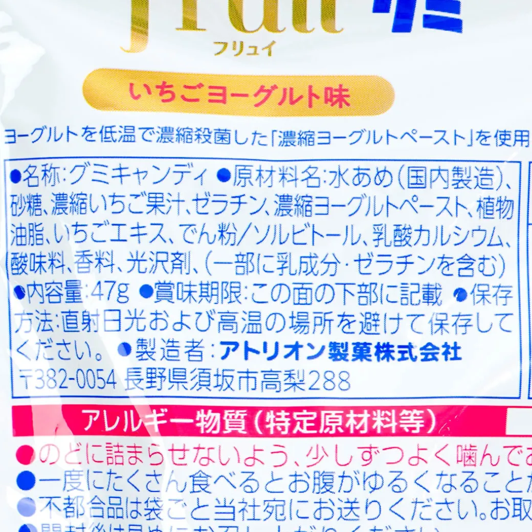 This pack of gummies is the perfect treat for health-conscious people. It combines the delicious taste of yogurt and strawberry! Each piece also contains calcium to help your bones grow.