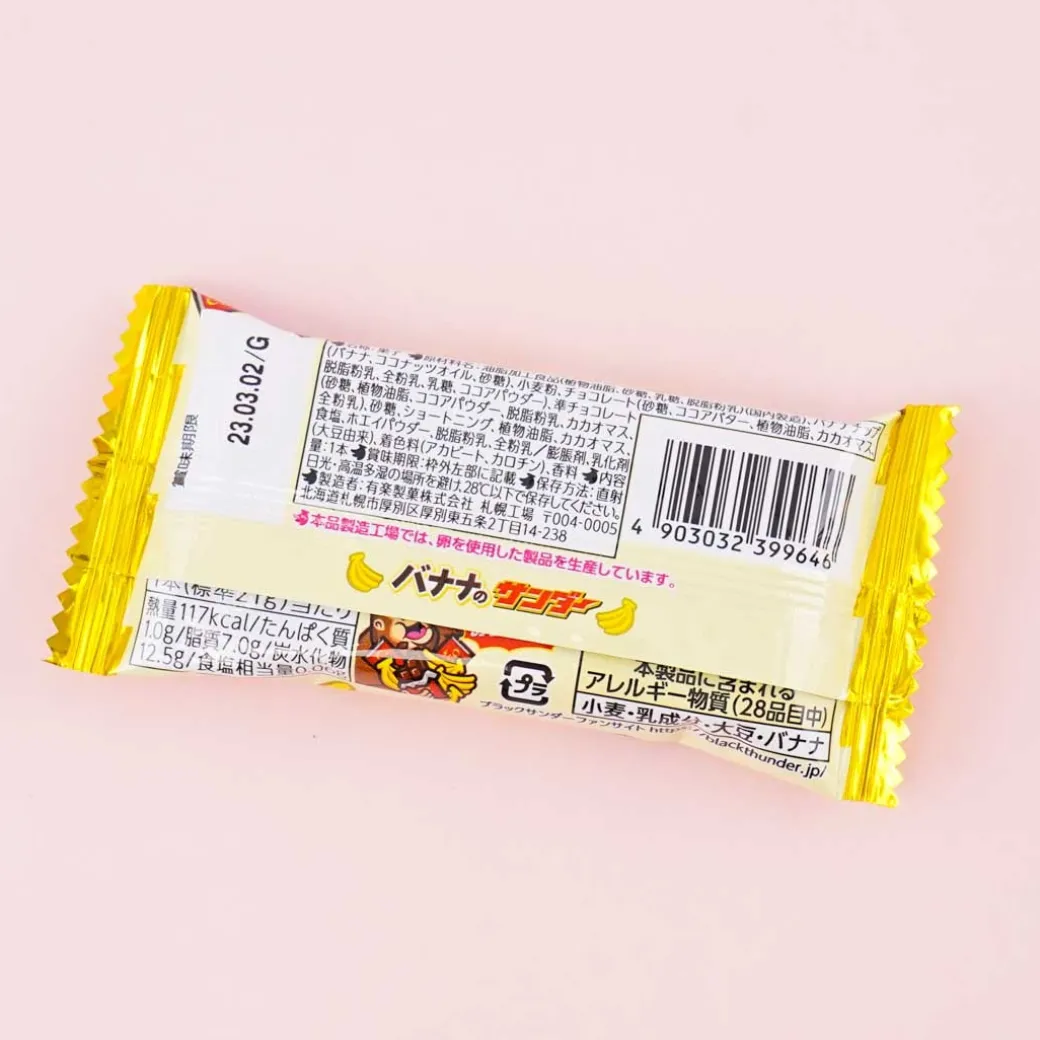 - A snack bar with banana-flavored chocolate and crushed banana chips