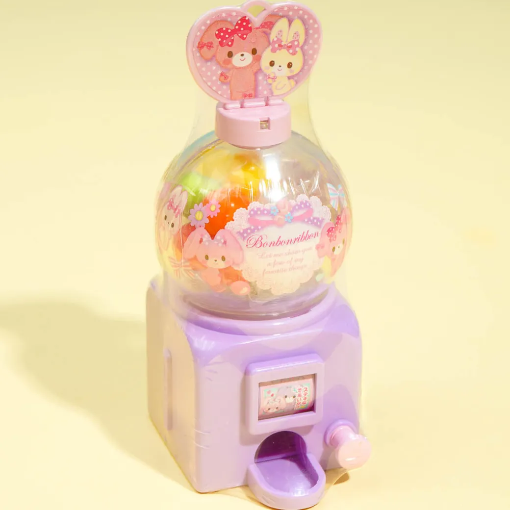 Have fun playing with this gumball machine! It showcases cute prints of Bonbonribbon and dispenses colorful gumballs for you to enjoy. Press the button and watch as a gumball drops.