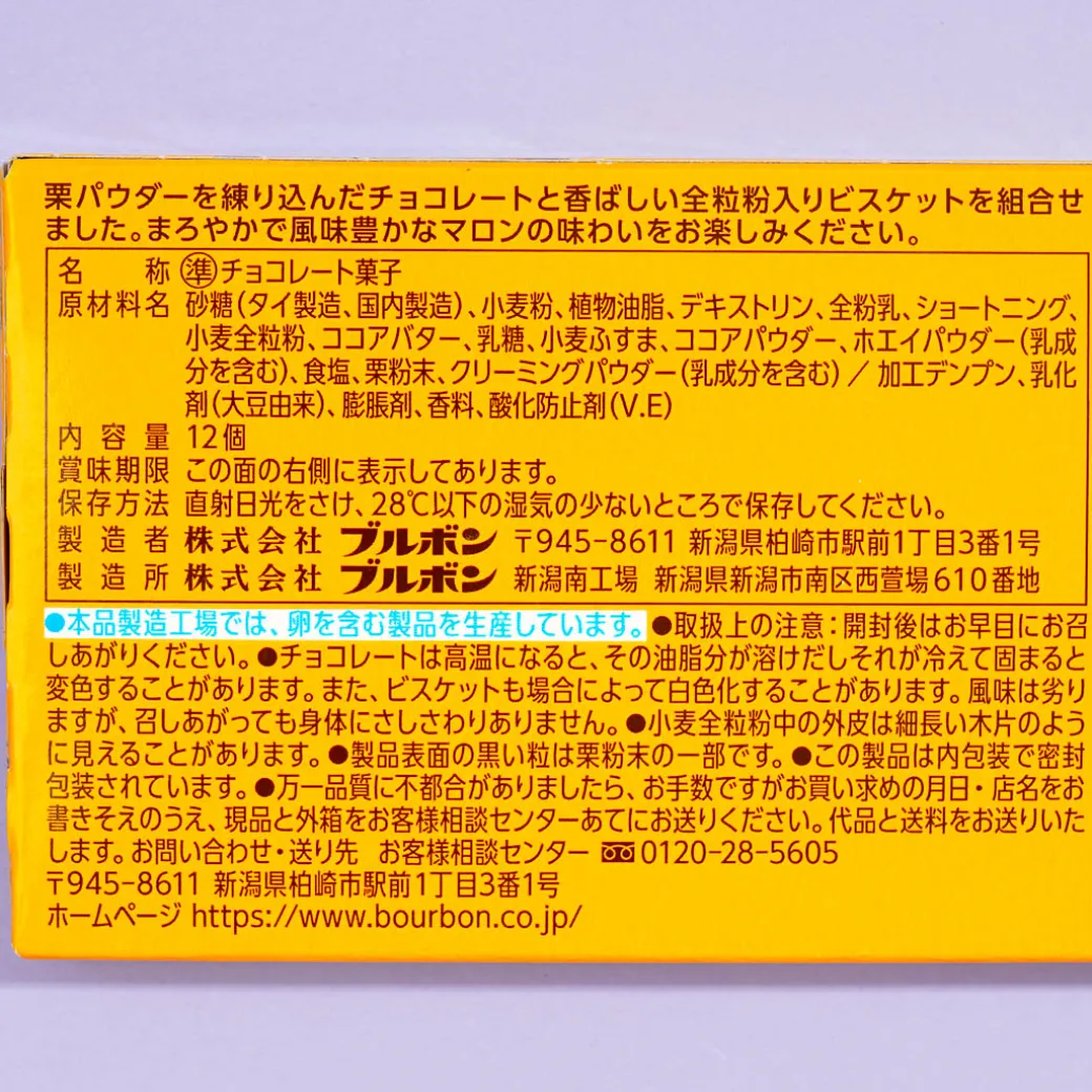These yummy bite-sized biscuits are paired together with a layer of chocolate showcasing a print of a sailboat! Enjoy the taste of mellow chestnut chocolate combined with yummy whole-grain biscuits.