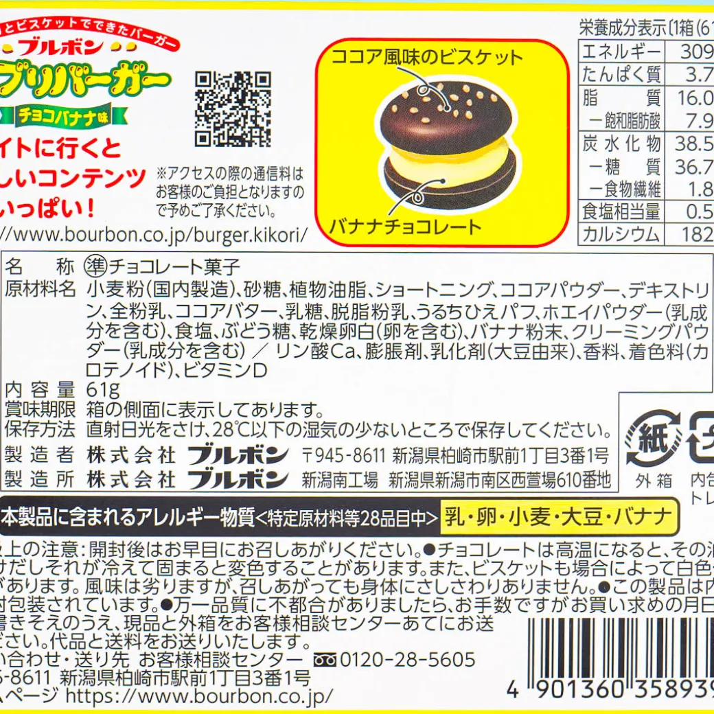 Share this box of yummy biscuit sandwiches with your family and friends. They look just like mini burgers! At the center of each chocolate cocoa biscuit sandwich is smooth banana chocolate.