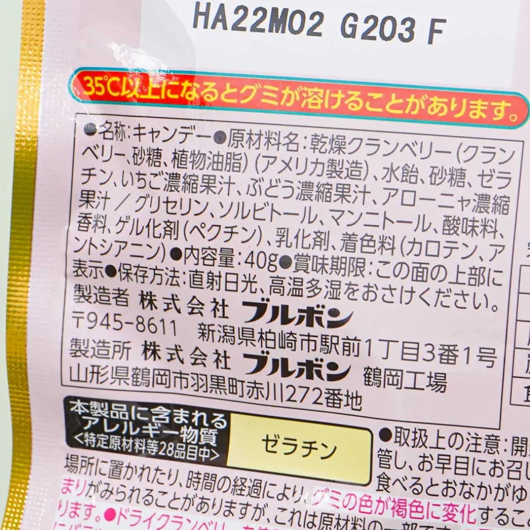 - A pack of berry gummies made with strawberry and Aronya juice mixed with dried cranberry bits