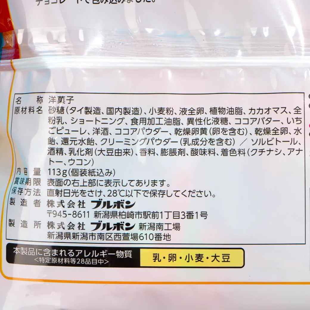 - A large pack of chocolate-covered cake with a strawberry cream and strawberry jelly center
