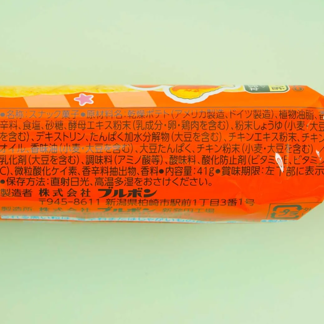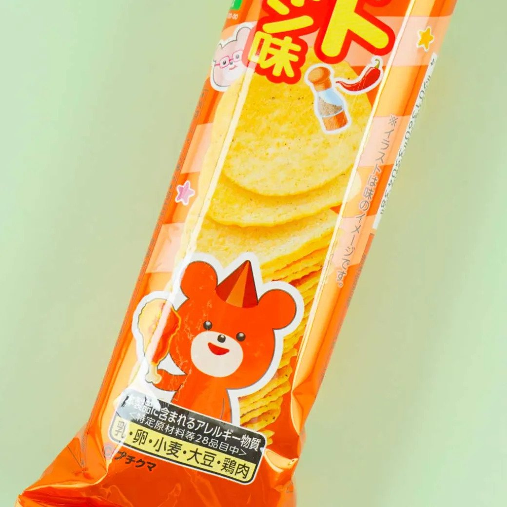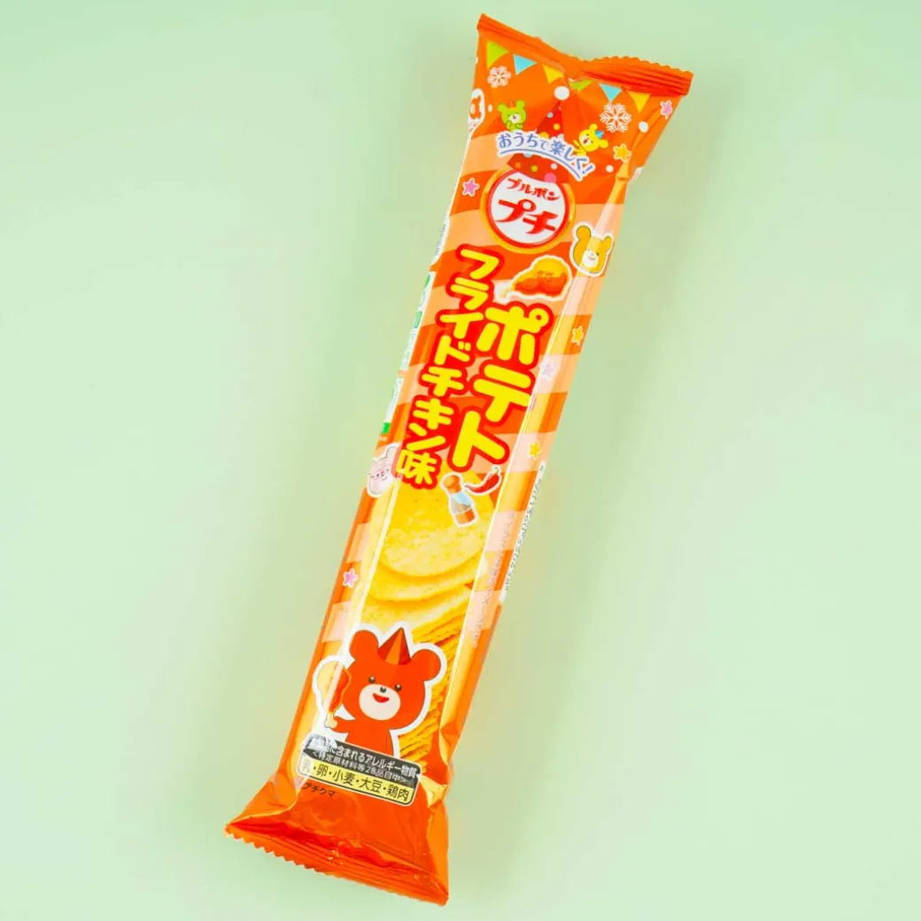 Bring along this pack of bite-sized potato chips in case you get hungry while walking around. These potato chips taste like delicious fried chicken! It’s seasoned with red pepper and black pepper spices.