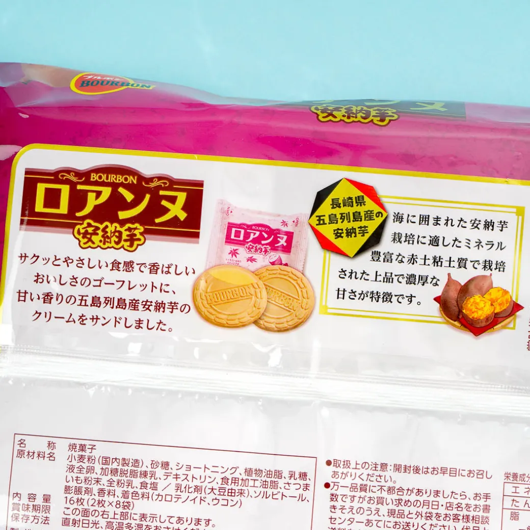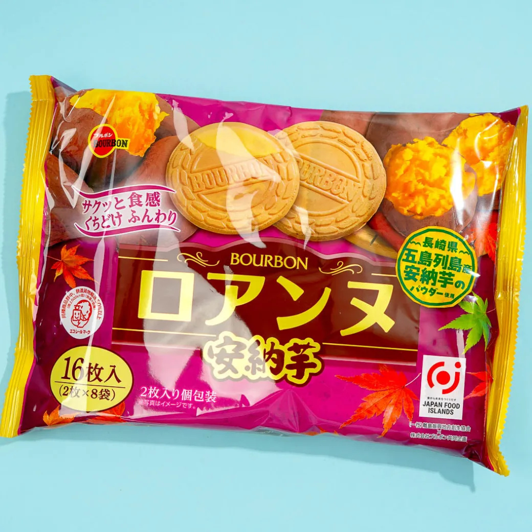 Sweet potatoes are popular snacks in Japan during autumn. Savor the sweet aroma of this root crop from the Goto Islands of Japan! The sweet potato cream is sandwiched between two crispy biscuits, creating a delicious blend of texture and flavor.