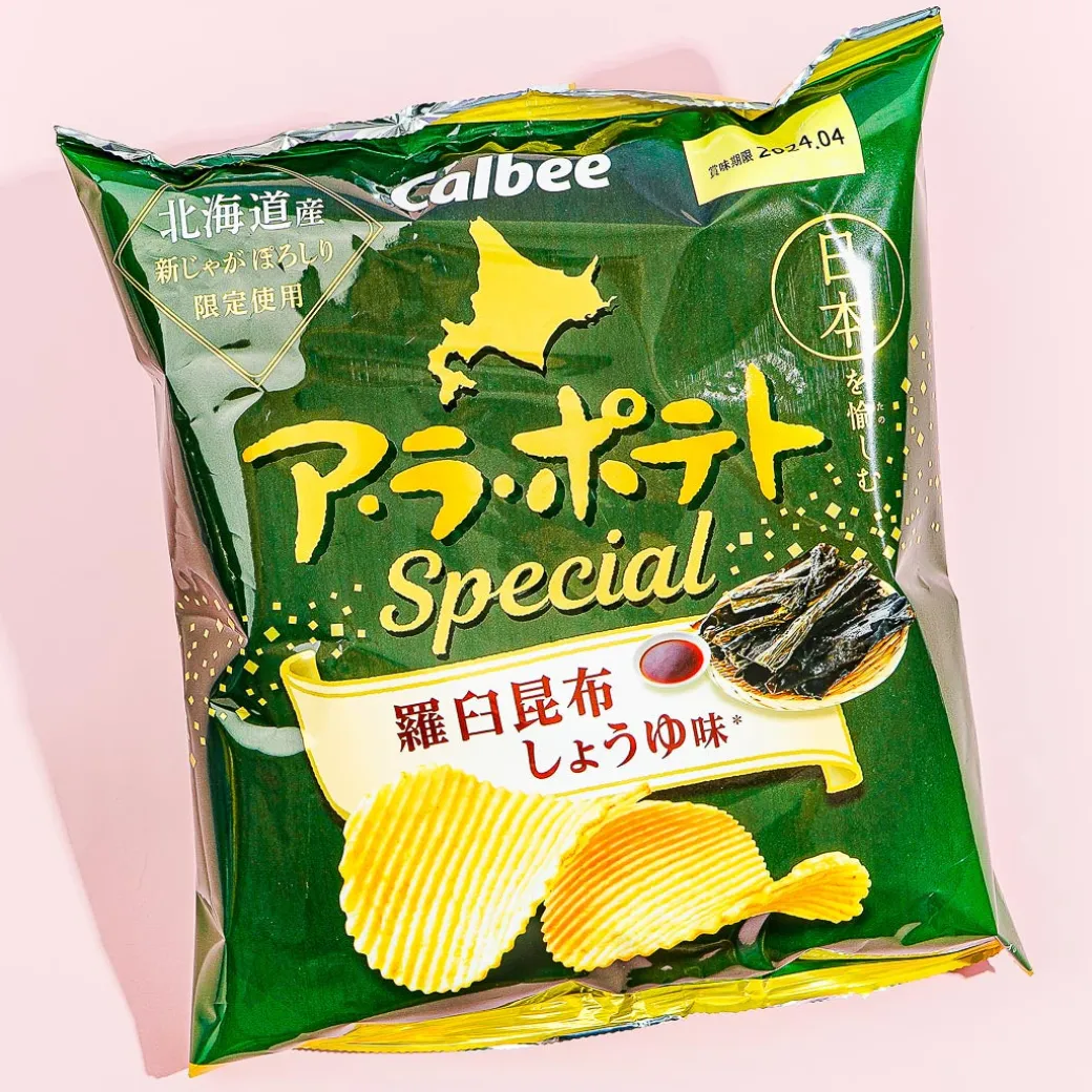 Enjoy munching on these ridged potato chips that are made from Hokkaido potatoes! They’re seasoned with Rausu kelp and soy sauce, with an addition of scallops and shiitake mushrooms that bring out the flavor.
