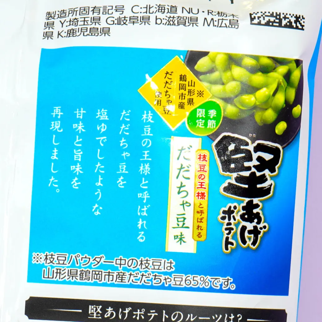 Have a taste of dadacha beans from Japan with this pack of hard, crunchy potato chips. Each piece is coated in a special powder made from dadacha beans harvested from Tsuruoka City in the Yamagata Prefecture in Japan. Share these chips with your friends!