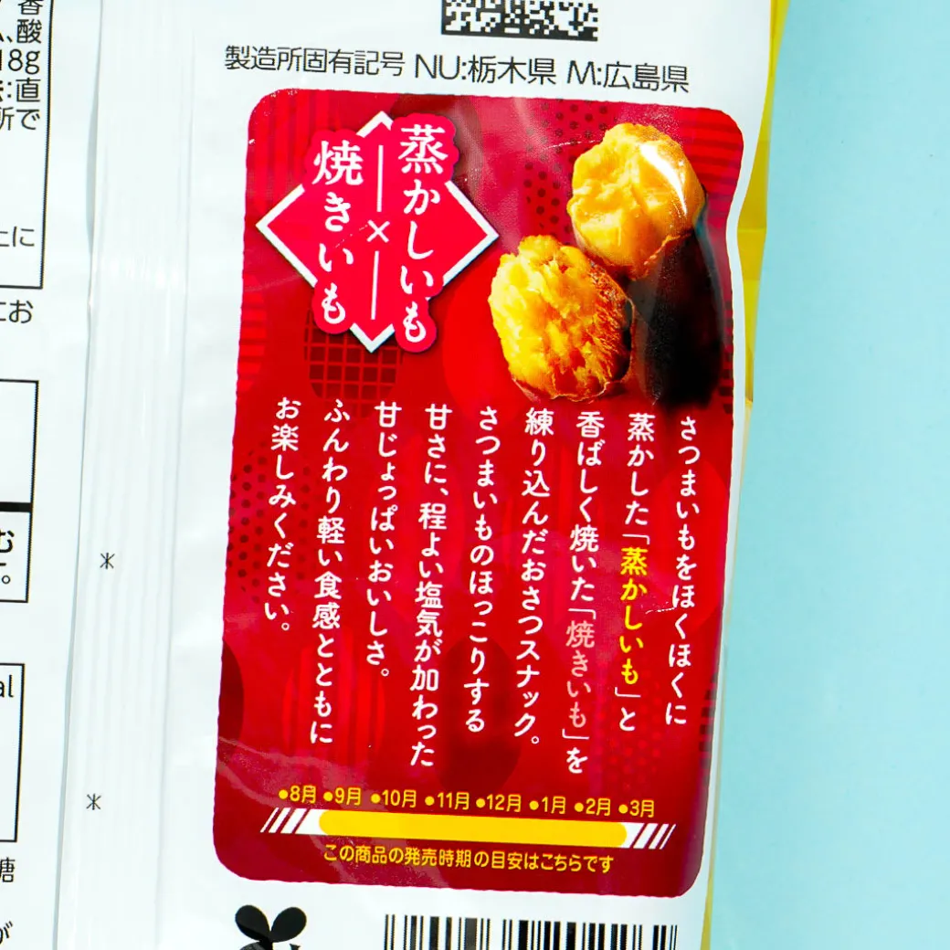 Enjoy snacking on this pack of sweet potato snacks this autumn! They’re made with delicious sweet potatoes from Japan. Each piece has a sweet taste combined with just the right amount of salt to bring out its sugary flavor notes!