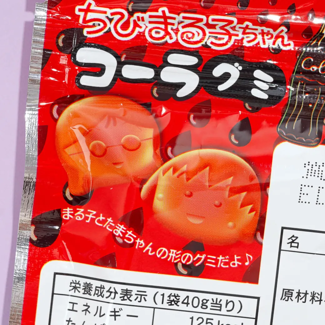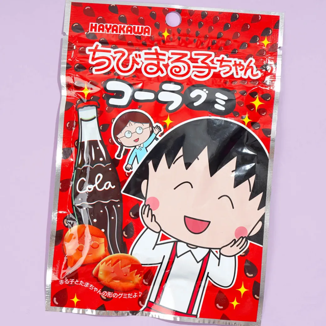 Have fun nibbling on these yummy cola-flavored gummies! These tasty treats are shaped like the faces of characters from the popular manga, Chibi Maruko-chan. You’ll find prints of Chibi Marku-chan characters on the packaging too.