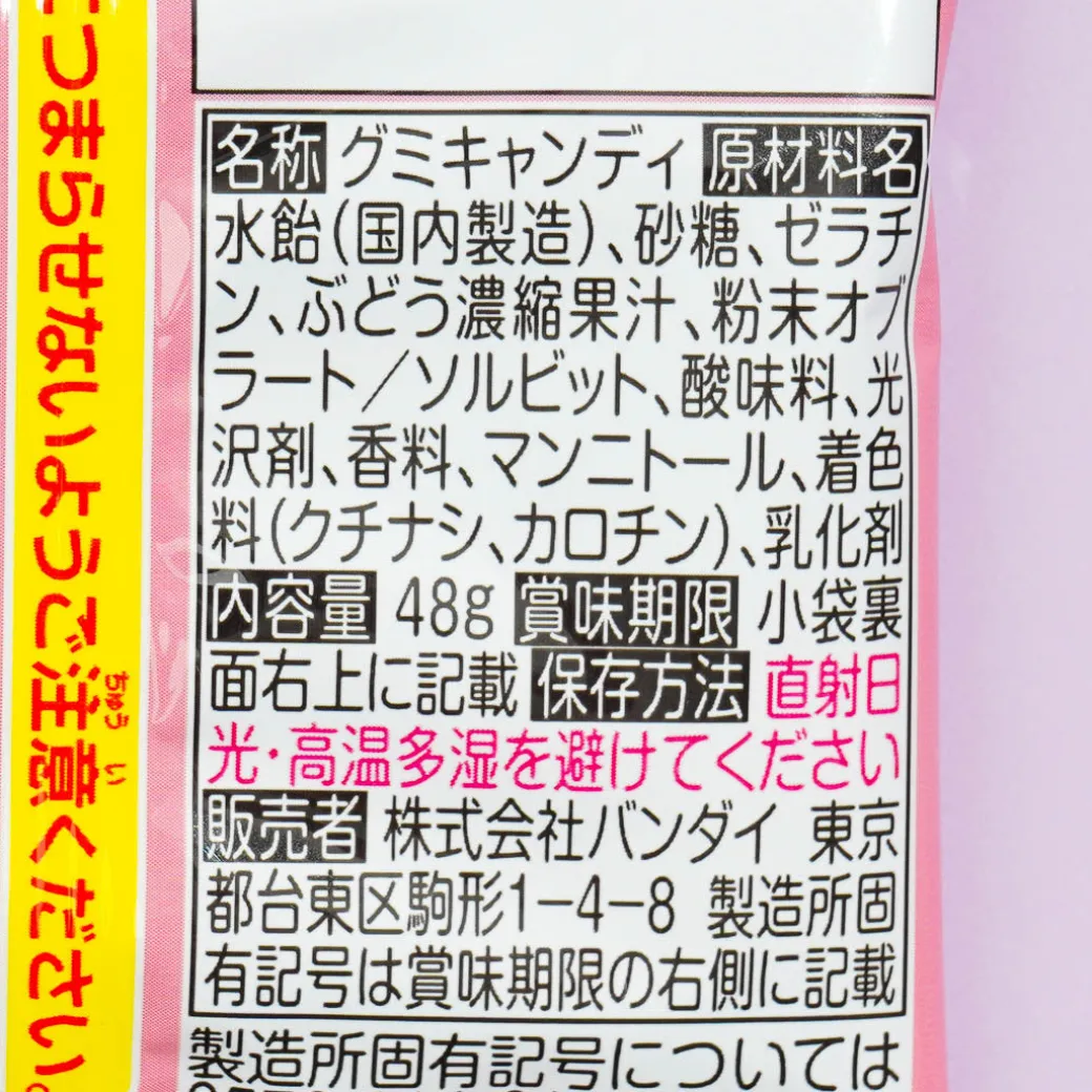 Have fun munching on these yummy grape-flavored gummy candies that are shaped like Chiikawa characters! They come in six different shapes and are made with real fruit juice.