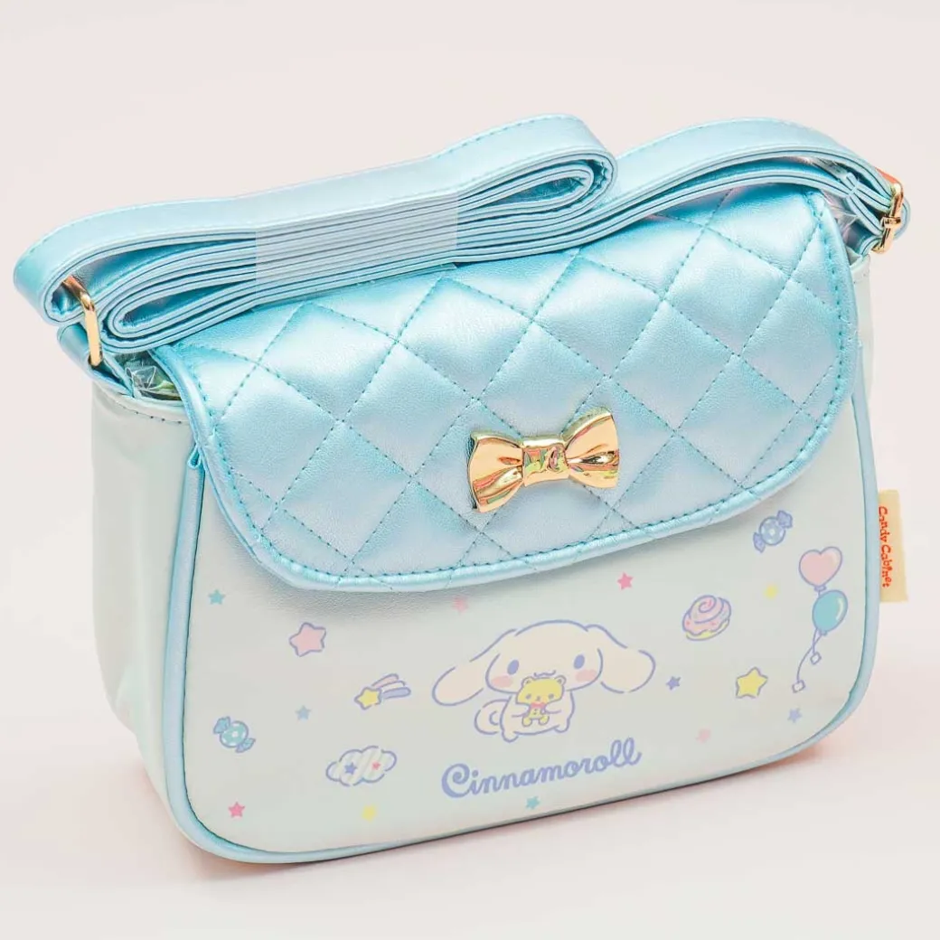 - A kawaii shoulder bag with illustrations of Cinnamoroll, balloons, and stars