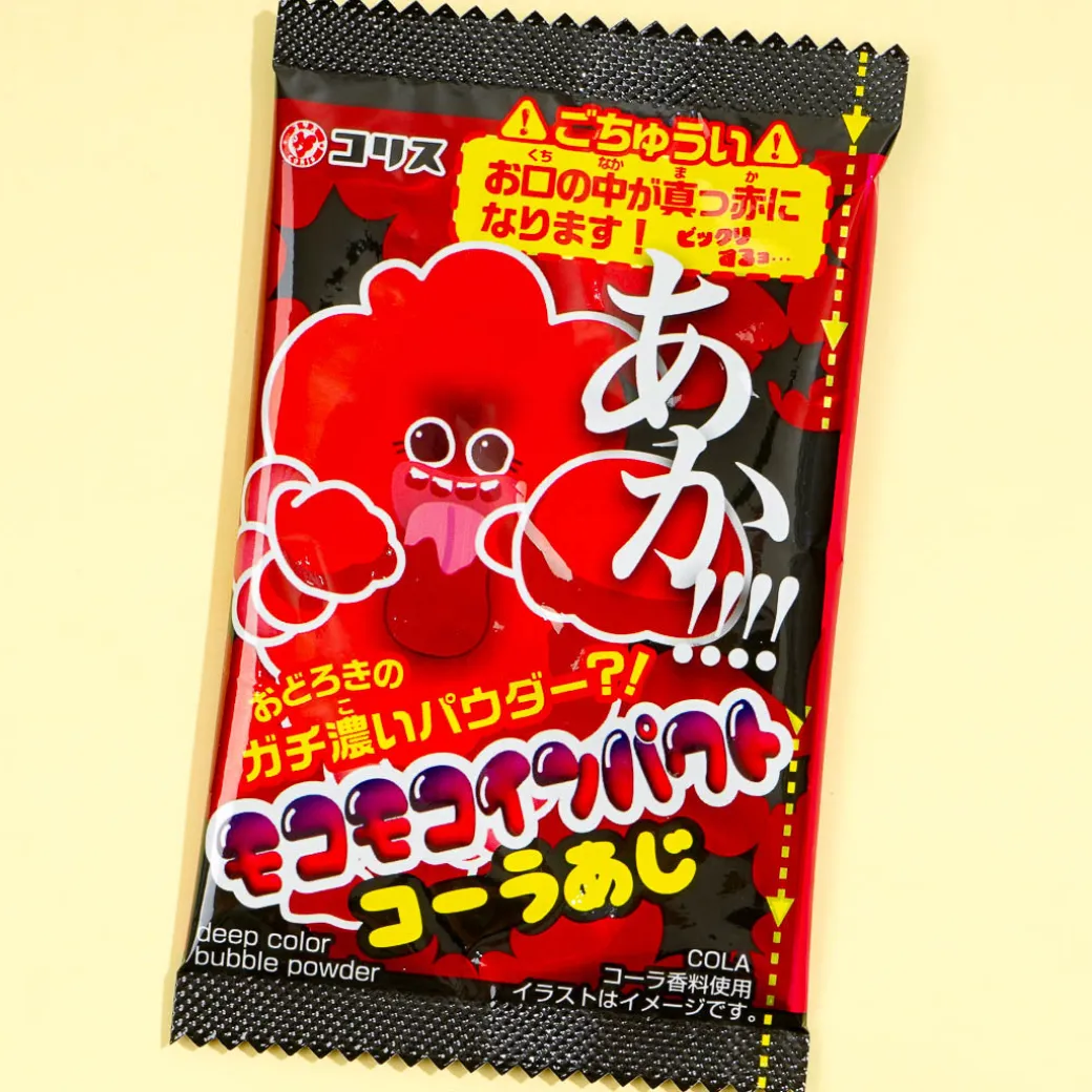 Eat this powdered candy and watch your tongue turn bright red! This cola-flavored candy is perfect for a fun afternoon treat!