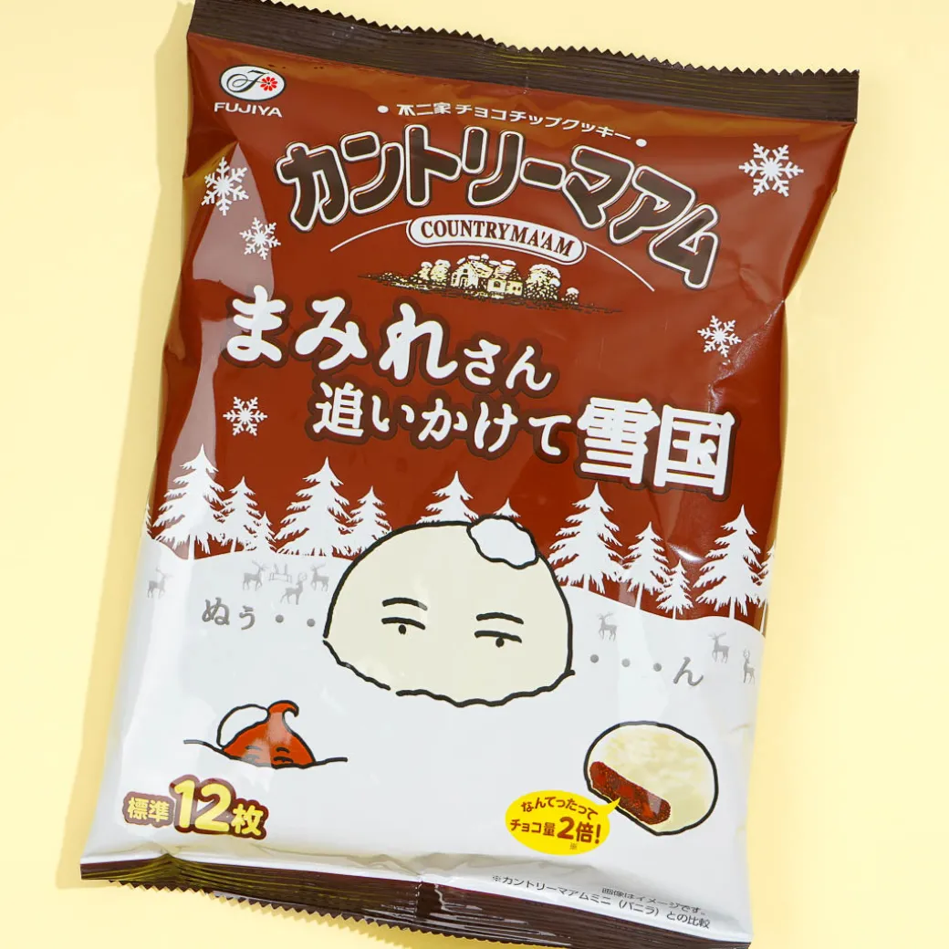 These chewy cocoa cookies are coated with delicious white chocolate, inspired by snow! They come in a winter-limited pack featuring Mamire-san, Country Ma’am’s character, who turned white. Enjoy this treat with a warm cup of milk on a cold day!