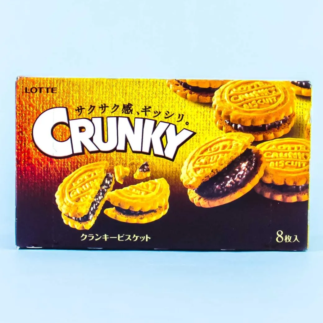- A box of individually-wrapped cookie sandwhiches with a crunchy filling made of Crunky chocolate