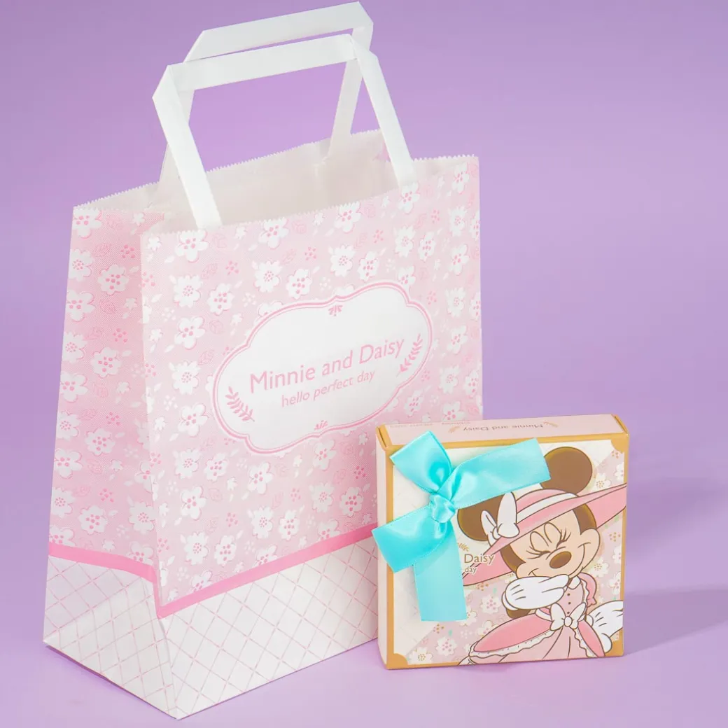 Give this special box of chocolates as a birthday present to your bestie! It contains four various shapes of choco treats featuring Minnie Mouse and Daisy Duck inside. The box is decorated with an illustration of Minnie as well! This set also comes with a pink and white printed paper gift bag.