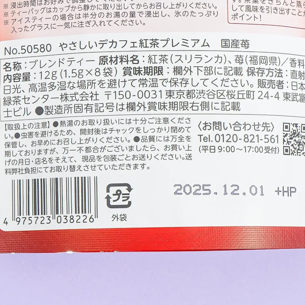 Enjoy the fruity scent of freshly picked strawberries with a cup of this premium black tea! It’s made with a blend of sweet Yumenoka strawberry powder and refreshing Ceylon tea. This decaffeinated drink is perfect for people who don’t like caffeine, and you can drink it even at night!