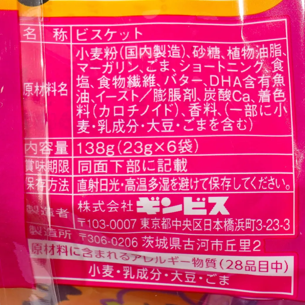 Creepy but cute ghosts and pumpkins took over the packaging of these edible critters for Halloween! Each animal-shaped biscuit features the English name of the kawaii creature that they resemble. These delicious and crunchy crackers have butter and maple flavors.