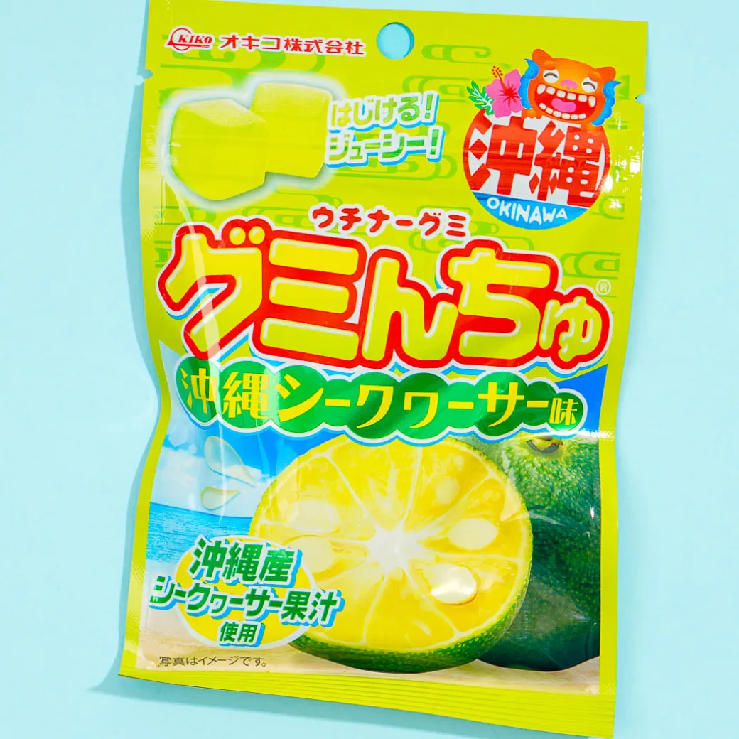 Enjoy the fresh aroma and sour taste of shikuwasa, an Okinawan specialty citrus fruit, in this juicy gummy candy! It’s made with shikuwasa juice and has a firm chewy texture.