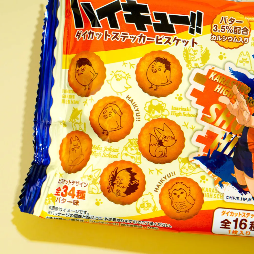 Enjoy these yummy biscuits that have cute prints of characters from the anime “Haikyu!!” They also come with a die-cut sticker featuring kawaii illustrations of the popular sports anime.