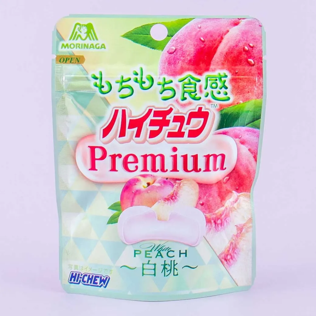- A pack of premium chewy candies with limited-edition white peach flavor