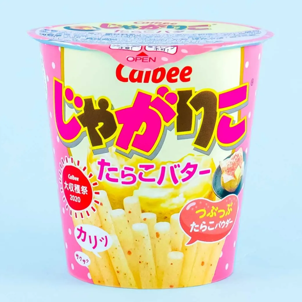 - A cup of butter and salted cod roe-flavored potato stick snacks
