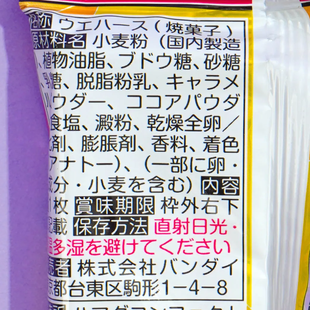 This fifth edition of Bandai’s Niformation Jojo’s Bizarre Adventure wafer snack features illustrations from the animated series’ “Diamond Is Unbreakable Act 2.” The pack contains a delicious caramel cream-flavored wafer and a collectible sticker. Have fun collecting all 35 types while enjoying this snack!
