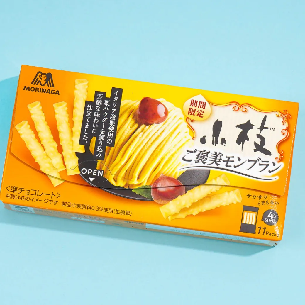 Reward yourself with a delicious treat after a long day of work! This crunchy twig-looking chocolate stick is inspired by an authentic Mont Blanc dessert, made with Italian chestnut powder, biscuit crunch, and wheat puffs.