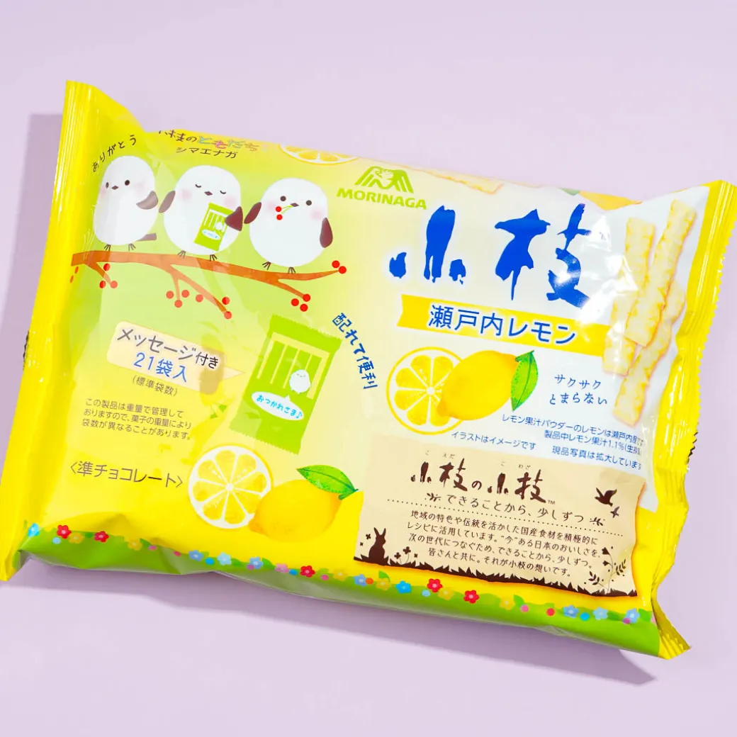 Snack on these twig-shaped biscuits or “koeda” as you have afternoon tea with your friends! Each piece is covered with chocolate that tastes the sweet and tangy flavor of fresh Setouchi lemons. The bag also contains several mini packs which you can share with your loved ones!