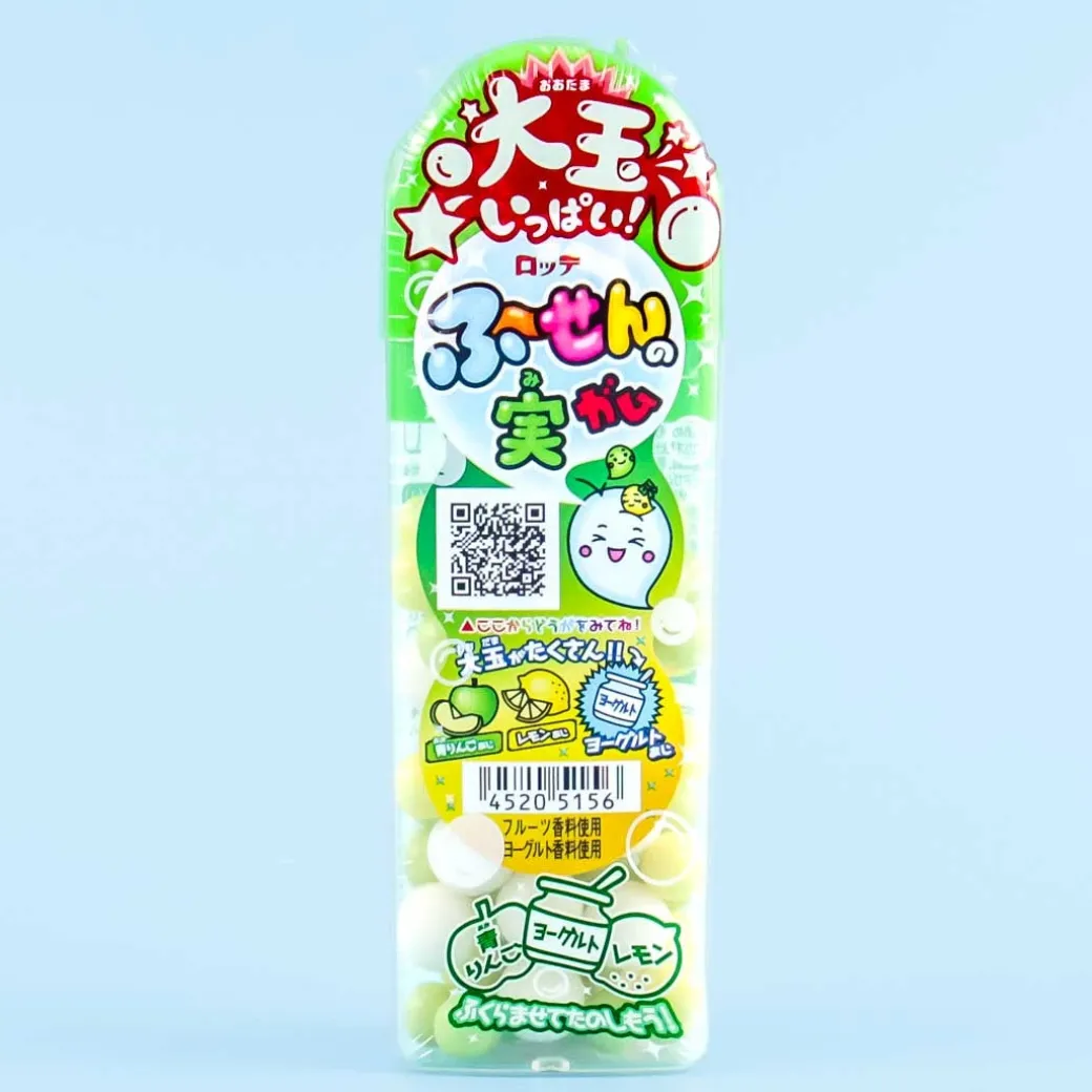 - A container of large lemon, apple, and yogurt-flavored gumballs