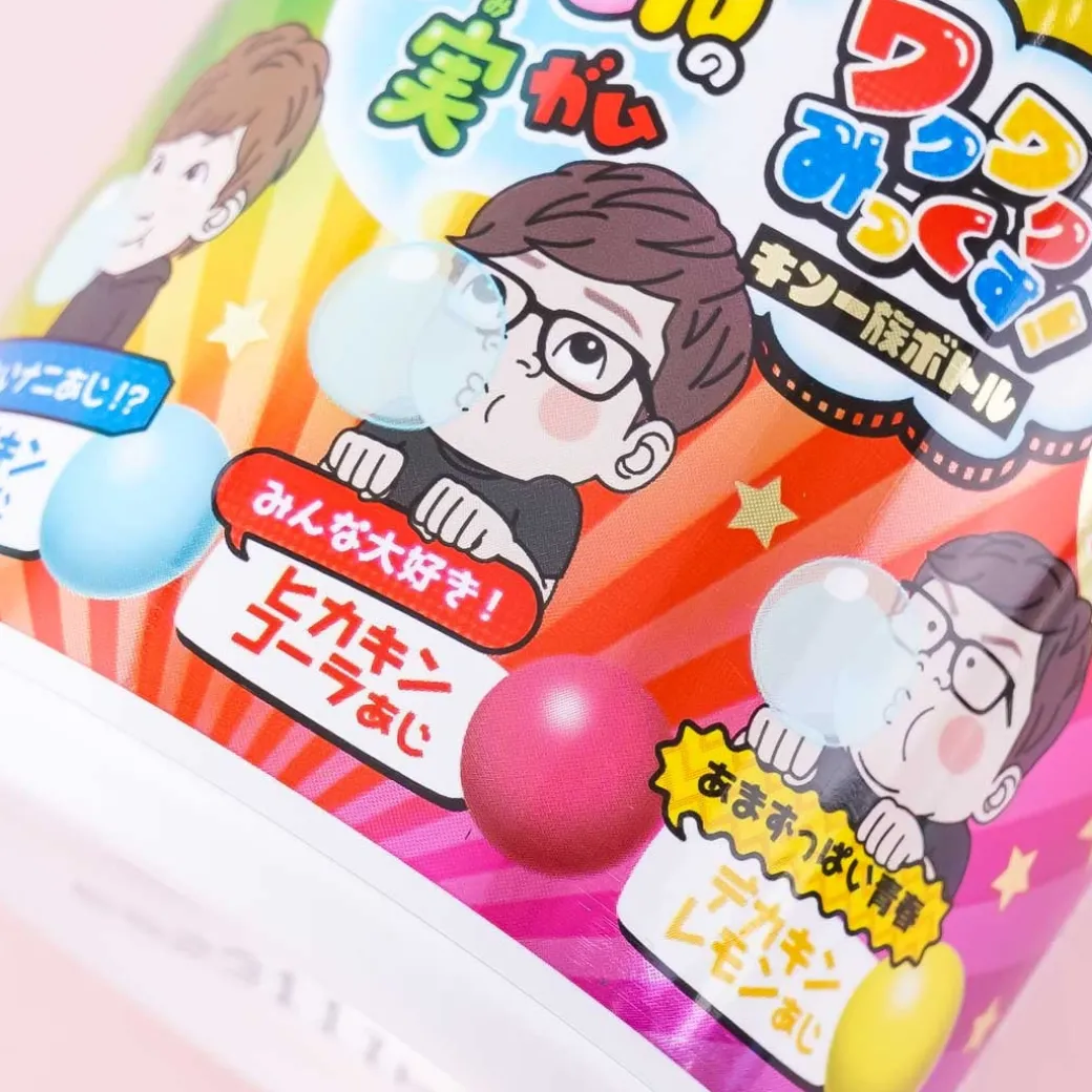 - A bottle of cola, lemon, and mystery-flavored gumballs