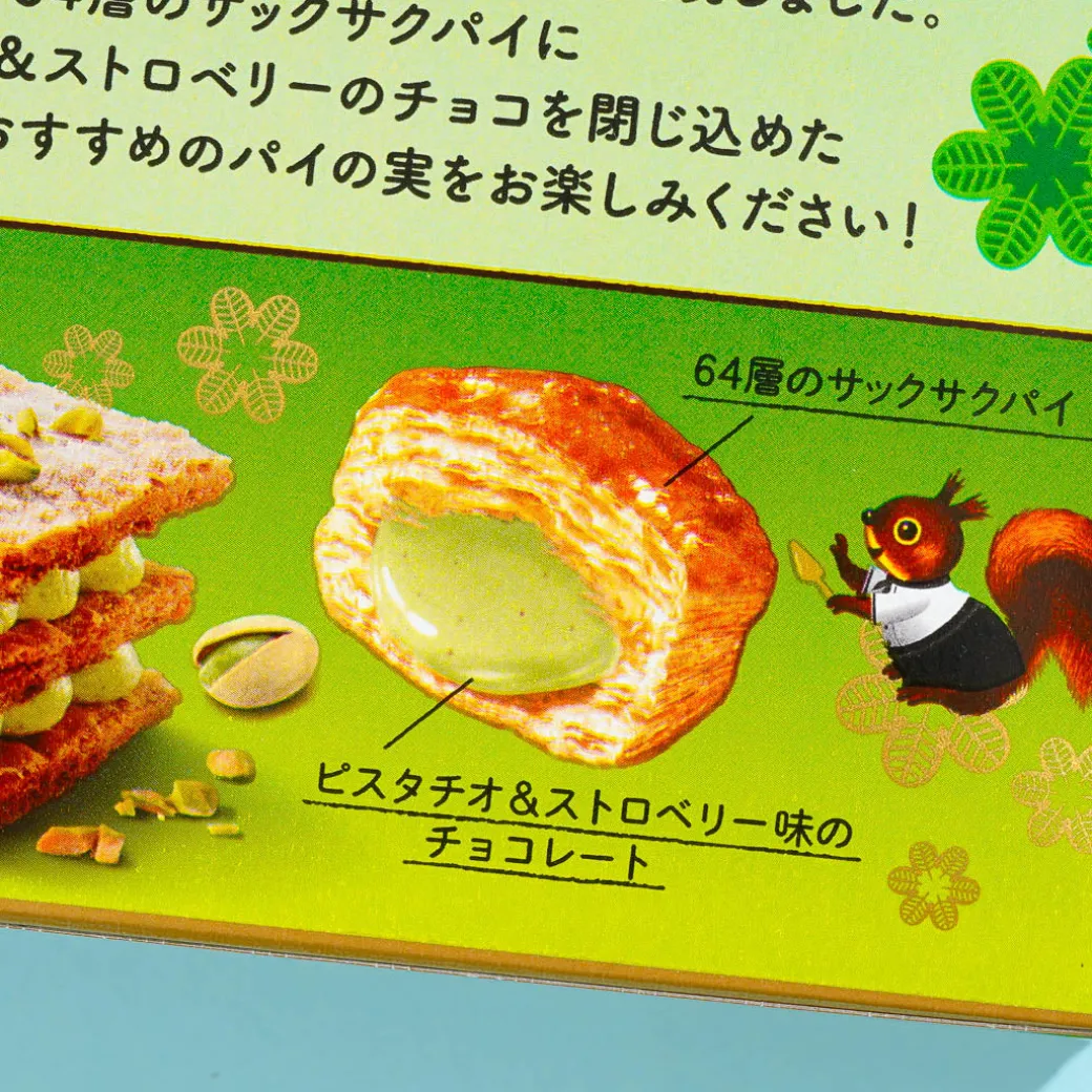 These yummy treats are made with 64 layers of pie dough! Pair these pie treats with your favorite hot beverage. Each piece has a center made of delicious pie and strawberry chocolate.