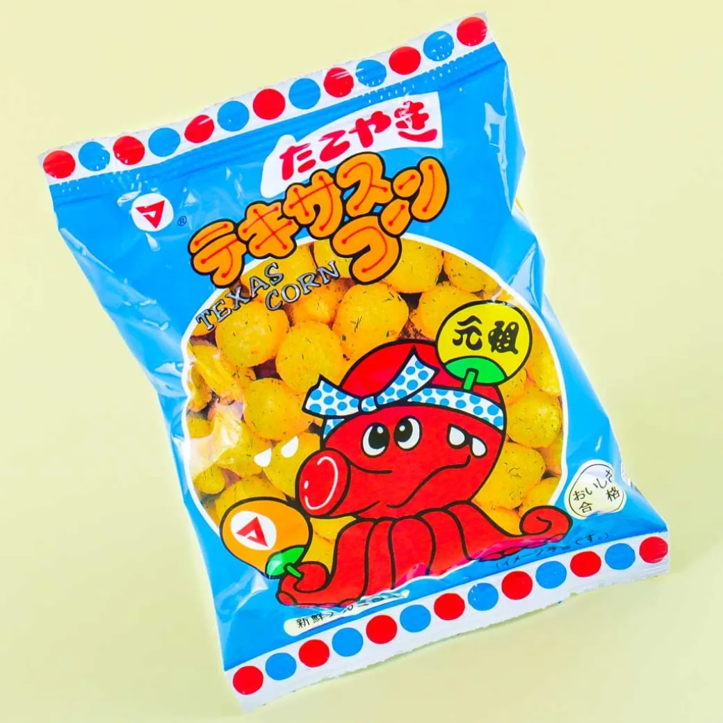 - A pack of takoyaki-flavored corn snacks