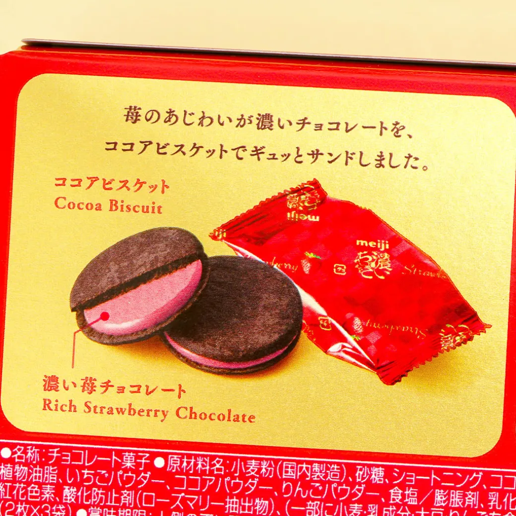 Pair this box of luxurious chocolate cookies with your favorite drink. Each individually wrapped piece has rich strawberry chocolate sandwiched between cocoa biscuits! Share them with your friends