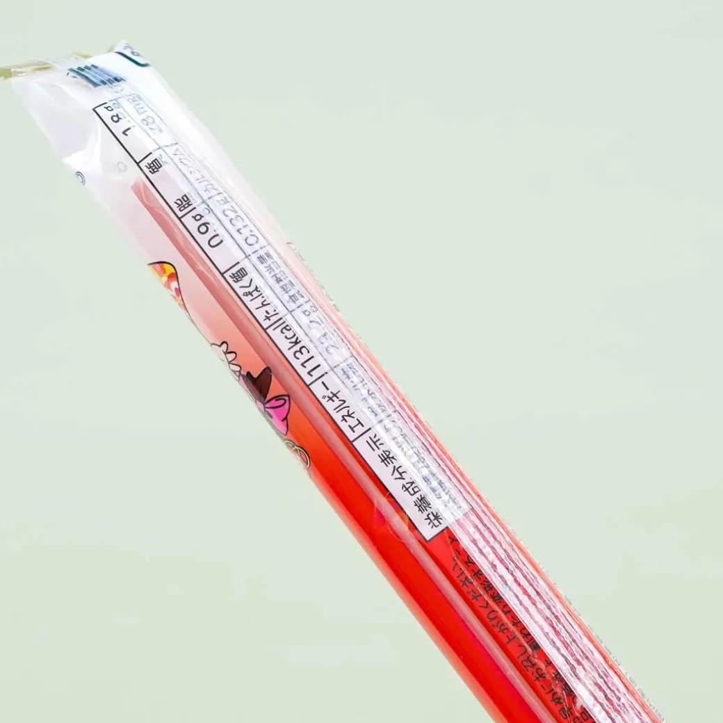 Celebrate Shichi-Go-San, a famous Japanese children’s holiday by eating this long red sweet candy stick made with condensed milk and 3% fresh cream from Hokkaido! Chitose-ame is one of the essential sweets given during this important festival to kids as a symbol of good health and longevity. The pack features Milky’s mascot Peko-chan, dressed in holiday-appropriate furisode or traditional festival kimono.