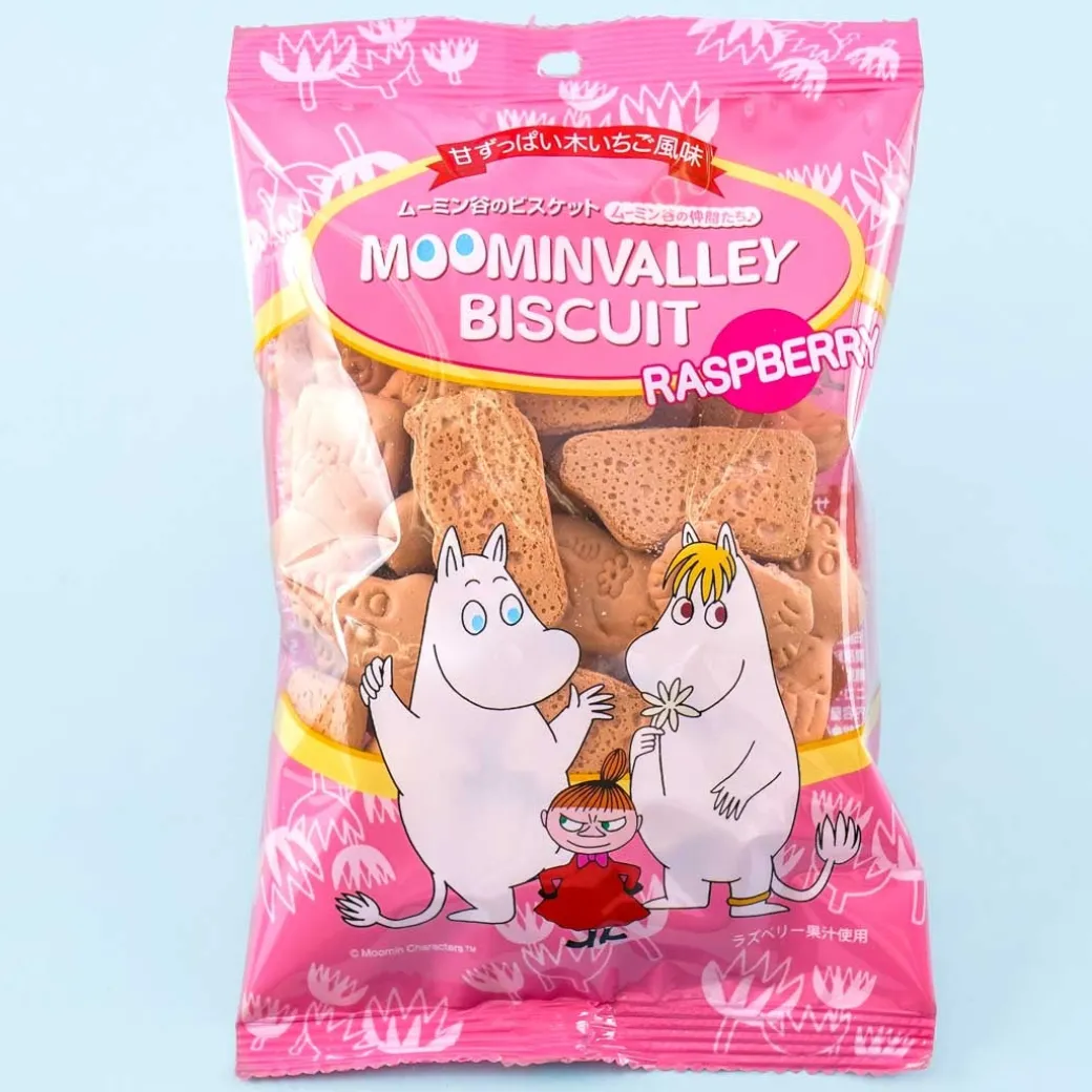- A pak of raspberry-flavored biscuits illustrated with Moominvalley characters