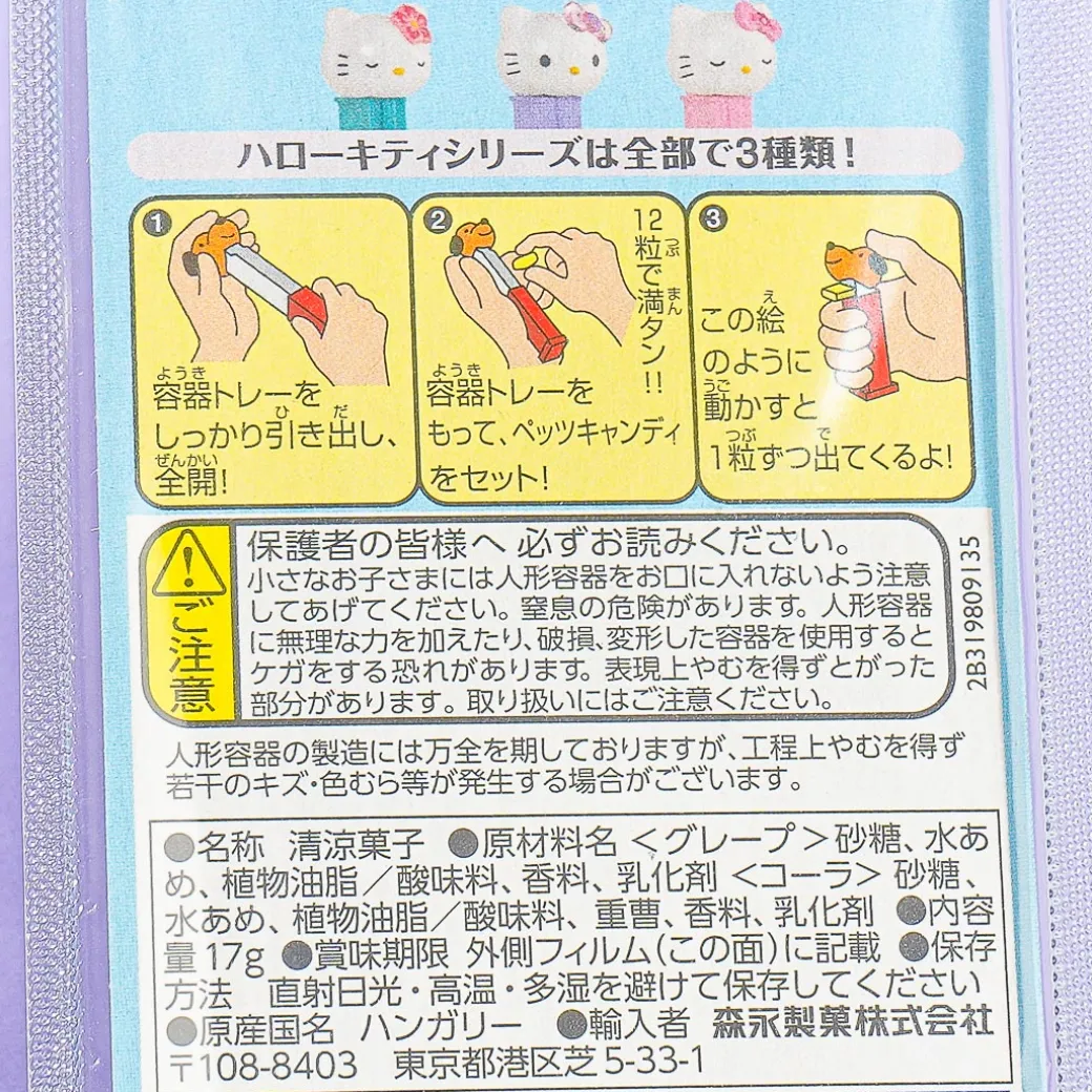 Keep these delicious grape and cola-flavored candies inside this unique-looking dispenser! Just flip the lid that’s shaped like the head of a relaxing Hello Kitty to dispense the sweets.