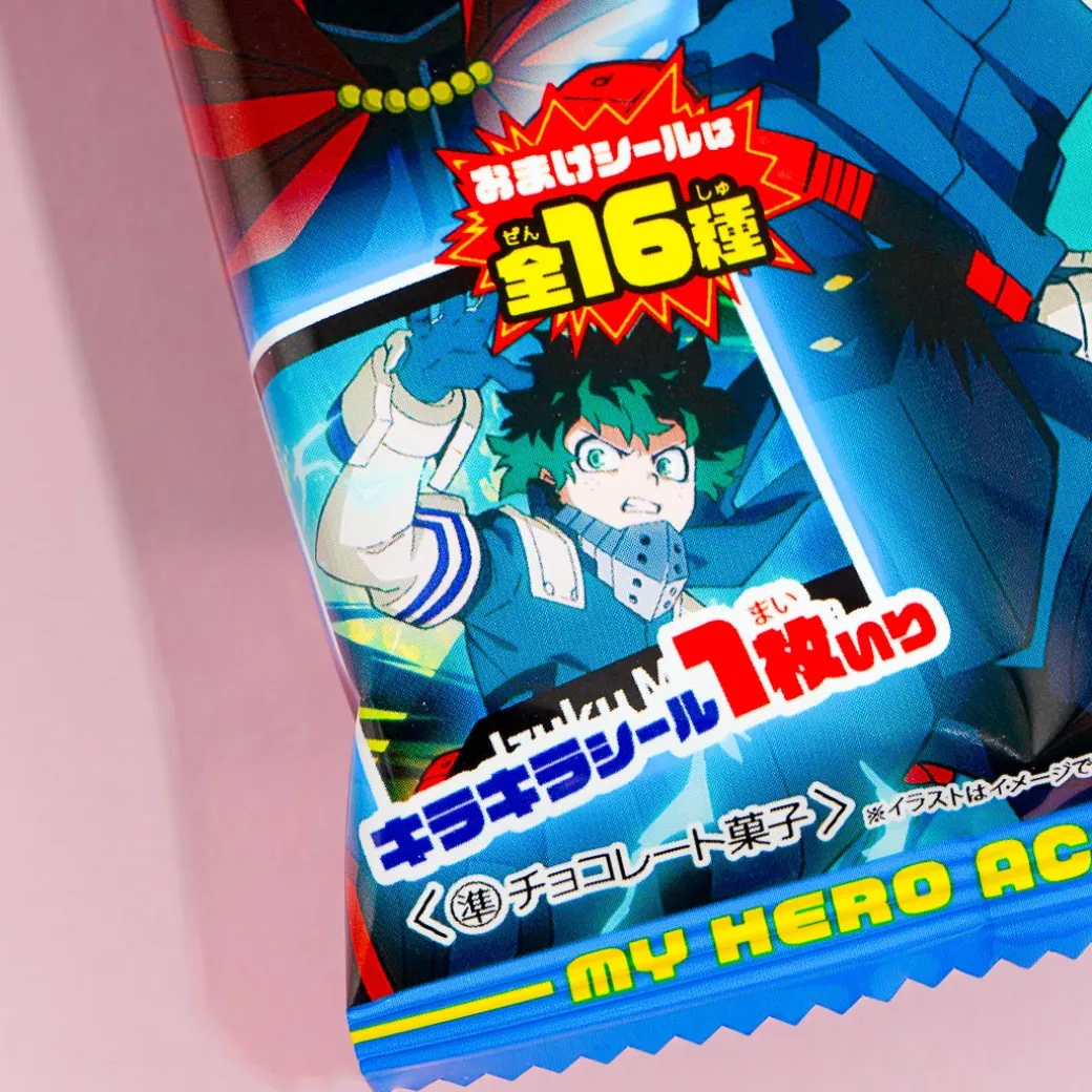 Go plus ultra with your My Hero Academia anime collection! This set comes with a square-shaped sticker that has a metallic finish as well as a free choco-flavored wafer. Collect all 16 designs and be number one!