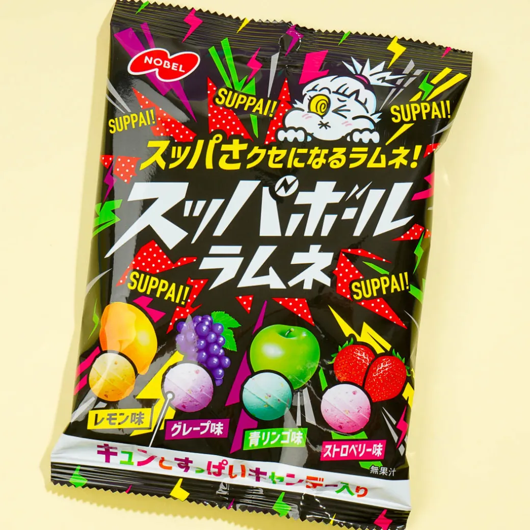 Enjoy a variety of super sour flavors when you open this pack of assorted ramune candies! The ball-shaped candy comes in fruity flavors: lemon, grape, green apple, and strawberry and has a fizzy texture.
