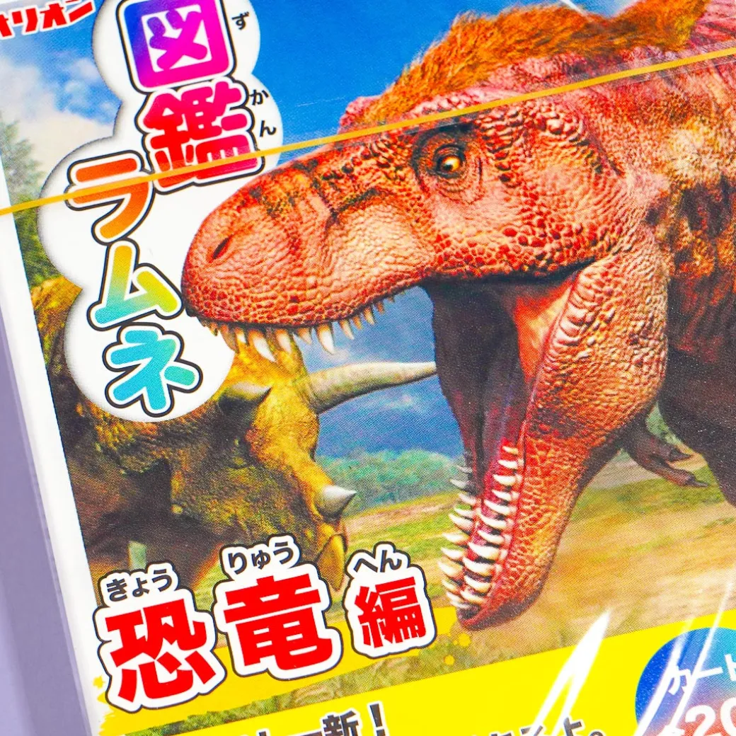 Enjoy eating these sweet and colorful ramune candies after a hearty lunch! These yummy treats come with free dinosaur cards from “Gakken no Zukan LIVE” — an interactive picture encyclopedia about different animals. You can experience the 3DCG or 3-dimensional animation effect of these cards by using a smartphone app.