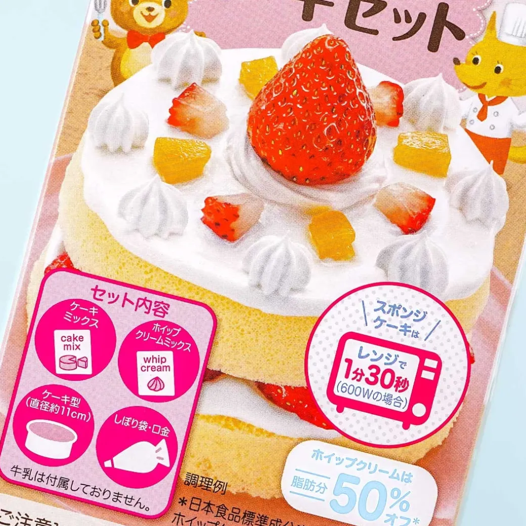 - Includes: 1 x cake mix, 1 x whip cream powder, 1 x cake mold, 1x piping bag, and 1x star tip for piping bag