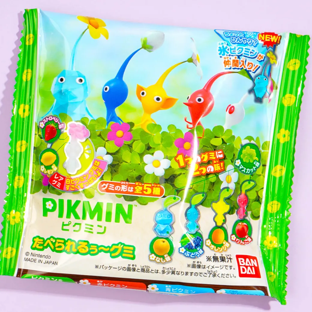 Enjoy snacking on these Pikmin-shaped gummies! This pack of gummy candies has five different main flavors – pear, grape, orange, apple, and the rare sour lemon. The leaves of the Pikmin gummy have a muscat flavor while the white Pikmin flowers are strawberry. Share them with your gaming buddies!