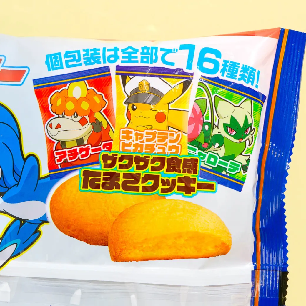 Enjoy munching on these egg-flavored cookies while watching your favorite anime series! The packaging features illustrations of Pokemon, and each cookie comes individually wrapped with a picture of a legendary pocket monster.