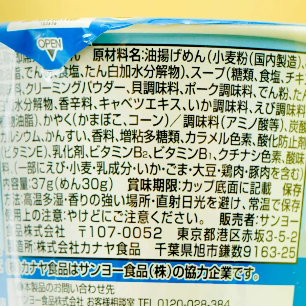 - A cup of seafood-flavored instant nooldles illustrated with Pokemon