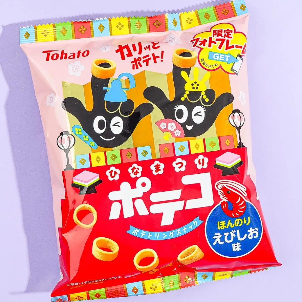 Enjoy snacking on these delicious shrimp-flavored potato rings with your friends! These crunchy treats come in a limited edition Hinamatsuri or Doll’s Festival packaging.