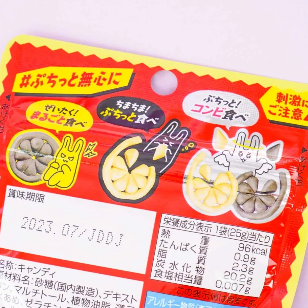 - A pack of lemon and cola-flavored soft candies that are shaped like lemon slices