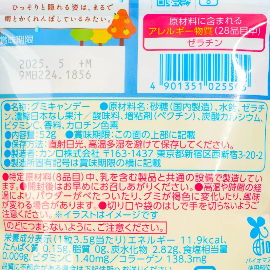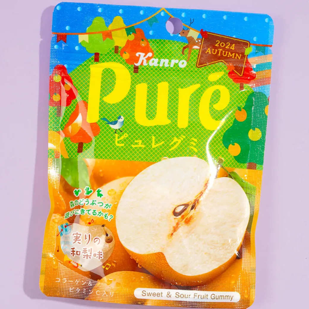 This pack of gummy candies is the perfect sugary pick-me-up after a tiring day! Each one tastes like delicious Japanese pear. Enjoy the sweet and sour fruity flavor with every bite.
