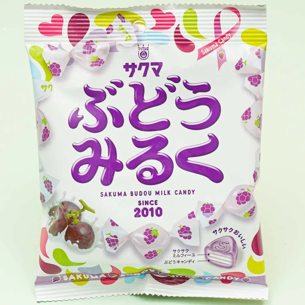 - A pack of grape-flavored milk candies with crispy milk crunch in the center