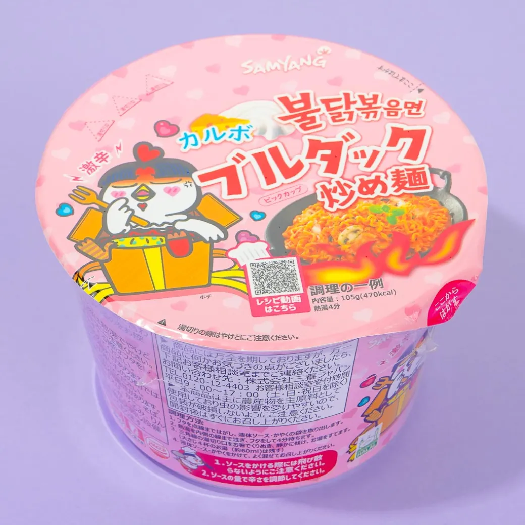 Try this new addition to the range of Buldak (hot chicken) stir-fried noodles! It comes in carbonara flavor — a delicious blend of thick cream and super spicy original Samyang sauce.
