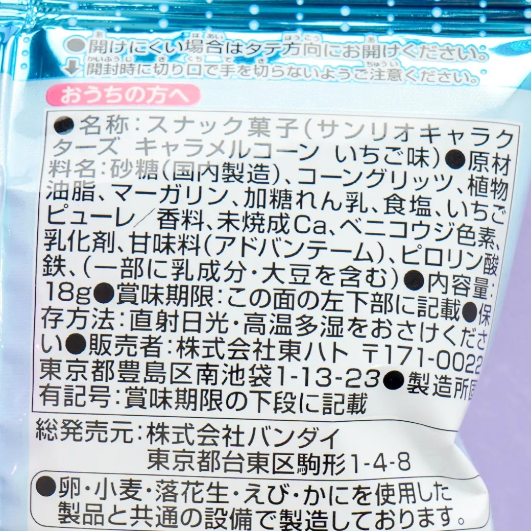 Enjoy the sweet taste of caramel with this pack of corn snacks! These puffy treats come in a Sanrio-themed bag with one surprise bonus sticker. Each puff is flavored with condensed milk and strawberry for a yummy sweet and sour taste.