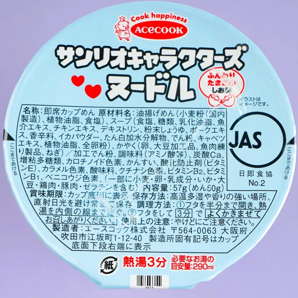 This cup of ramen noodles is easy to eat and cute to look at! After adding hot water, you’ll get to enjoy seasoned noodles and fluffy eggs in a savory salt soup base. It also comes with Sanrio characters on the packaging and a code for a kawaii photo frame that you can download.